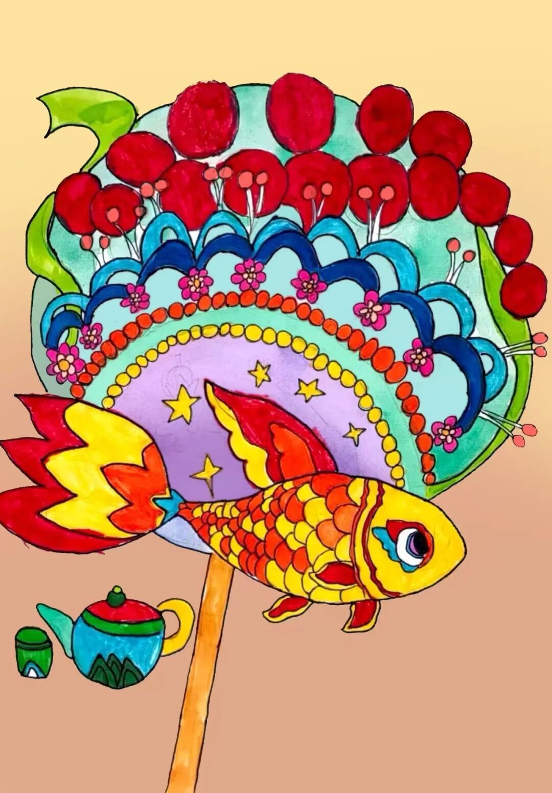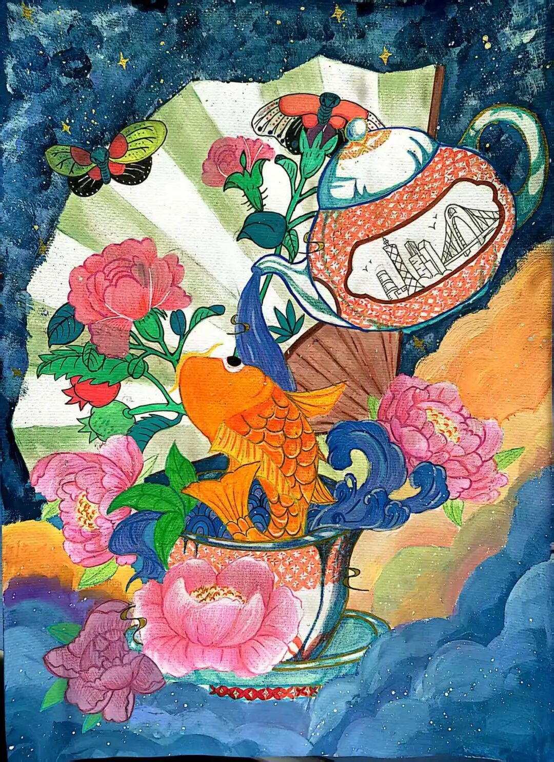 △蔡韶阳《茶韵锦鲤绘湾区,岭南蝶梦焕新章》